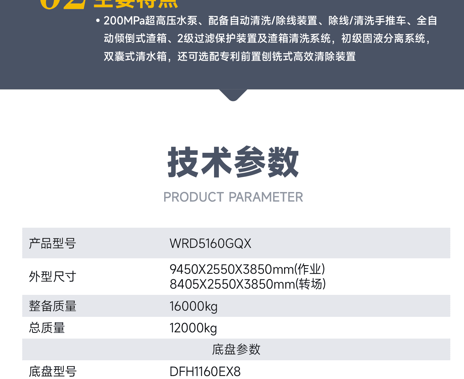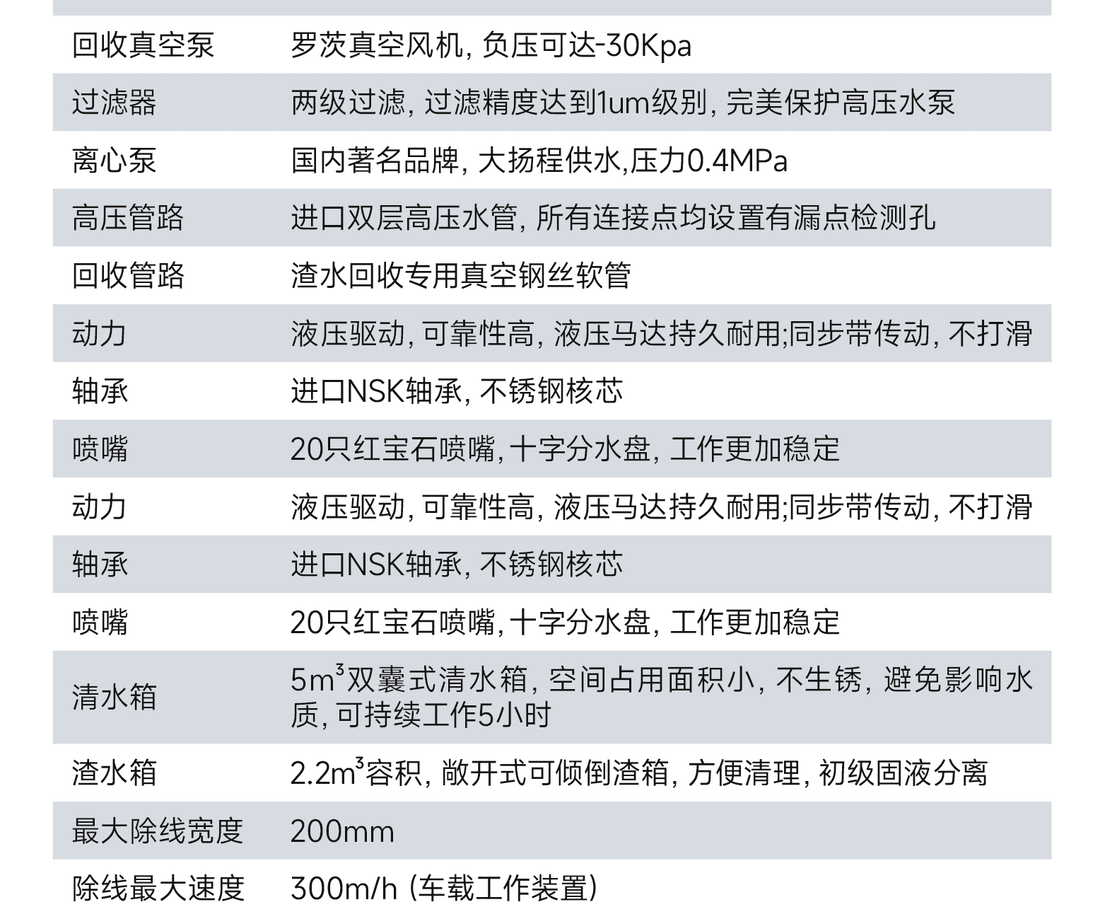 主要特點:200MPa超高壓水泵、配備自動清洗/除線裝置、除線/清洗手推車、全自動傾倒式渣箱、2級過濾保護裝置及渣箱清洗系統(tǒng),初級固液分離系統(tǒng),雙囊式清水箱,