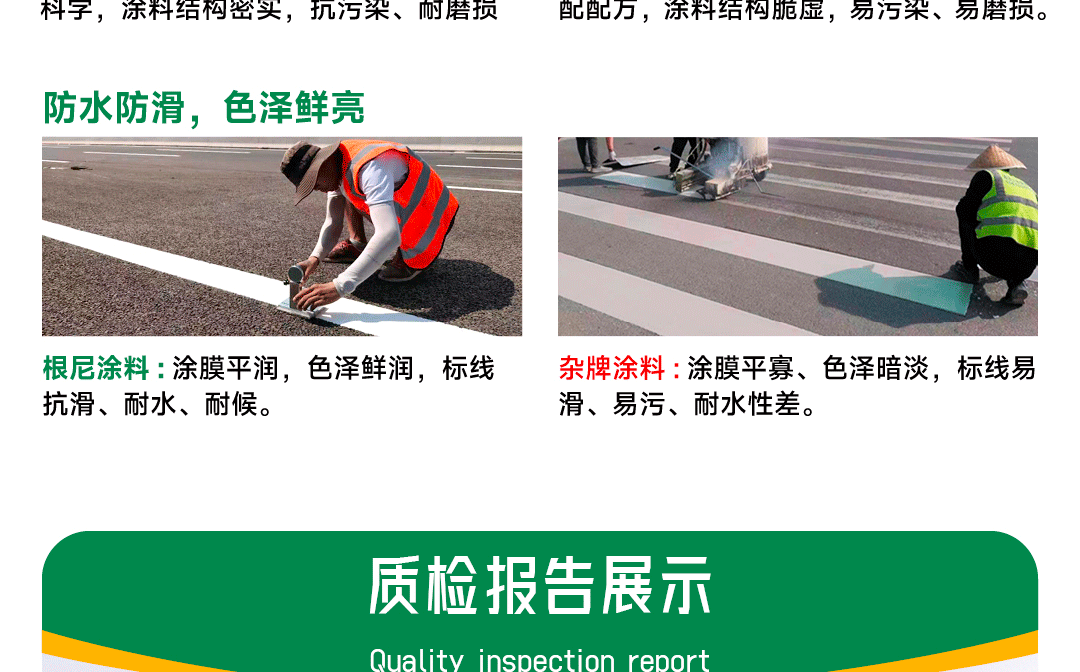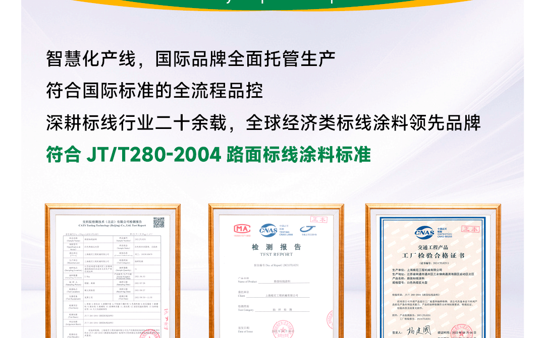 涂料特點:結構合理、混合均勻、質量一致性高 / 玻璃珠含量少 / 用途廣泛,使用方便。執行標準:符合JT/T280-2004主要標準;
