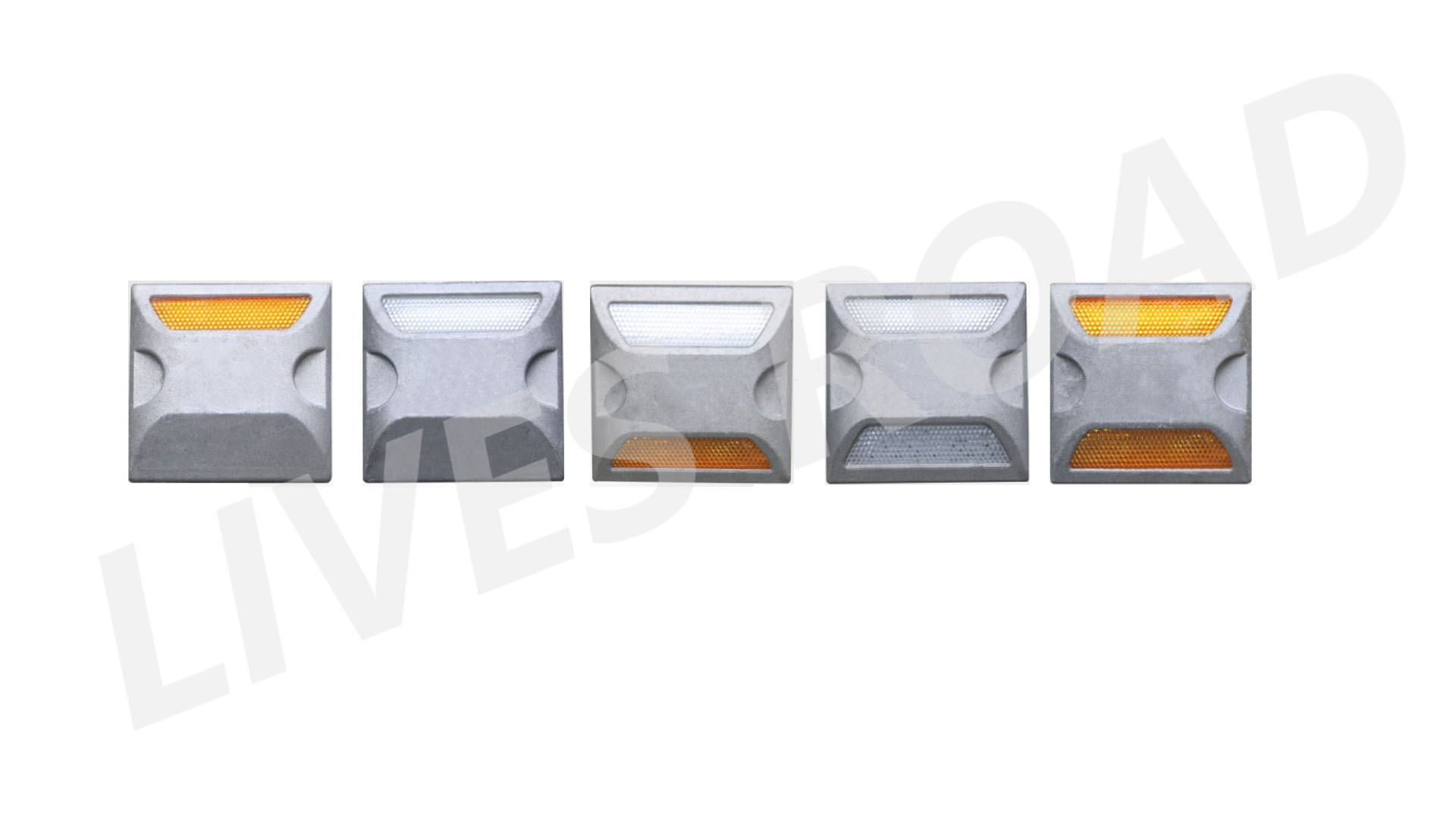 3、鑄鋁填充道釘殼體采用GB-ADC12鋁錠,內(nèi)部使用專用環(huán)氧樹脂填充、實心密封,固化后抗壓16噸以上,內(nèi)嵌式反光片,永不脫落;