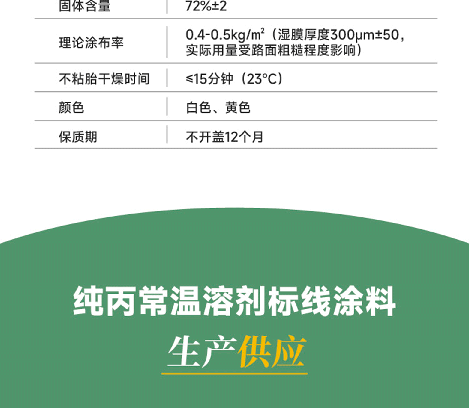 由純丙丙烯酸樹脂、復配顏填料及多種功能性助劑,經特殊工藝制成的通用型標線材料。標線特點:涂料細膩、色正防滑、耐磨耐候、覆蓋性高、耐磨耐候、施工性好、抗沉不起泡;