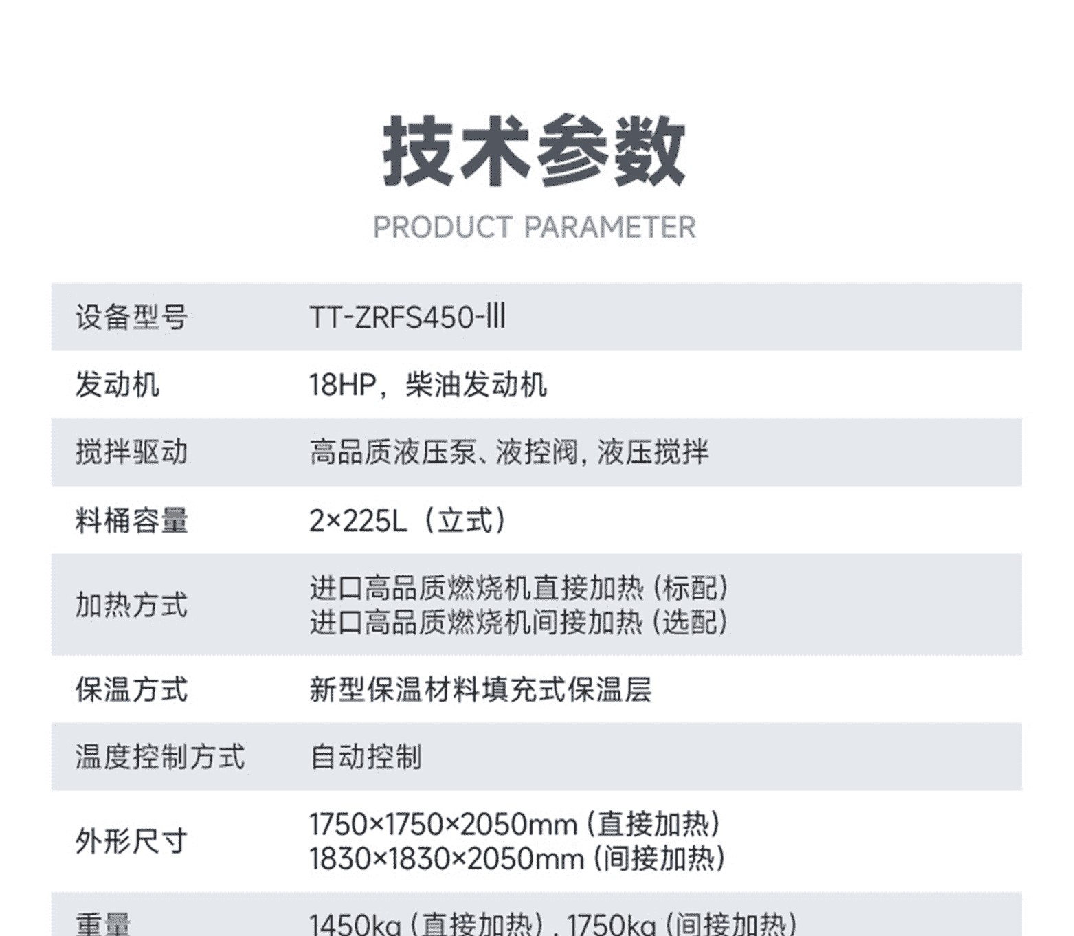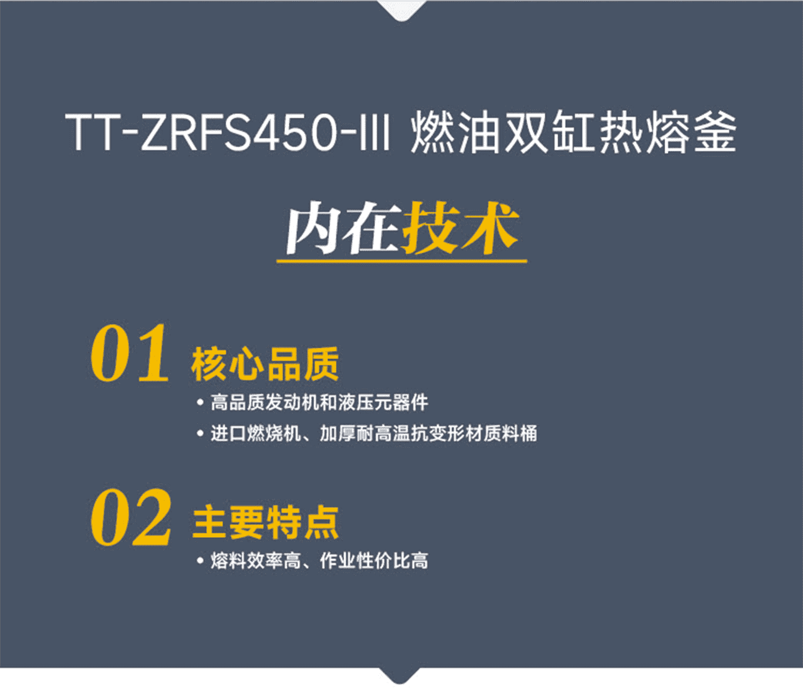 ?專家測評:核心品質(zhì):高品質(zhì)發(fā)動機(jī)和液壓元器件、進(jìn)口燃燒機(jī)、加厚耐高溫抗變形材質(zhì)料桶。主要特點(diǎn):熔料效率高、作業(yè)性價比高