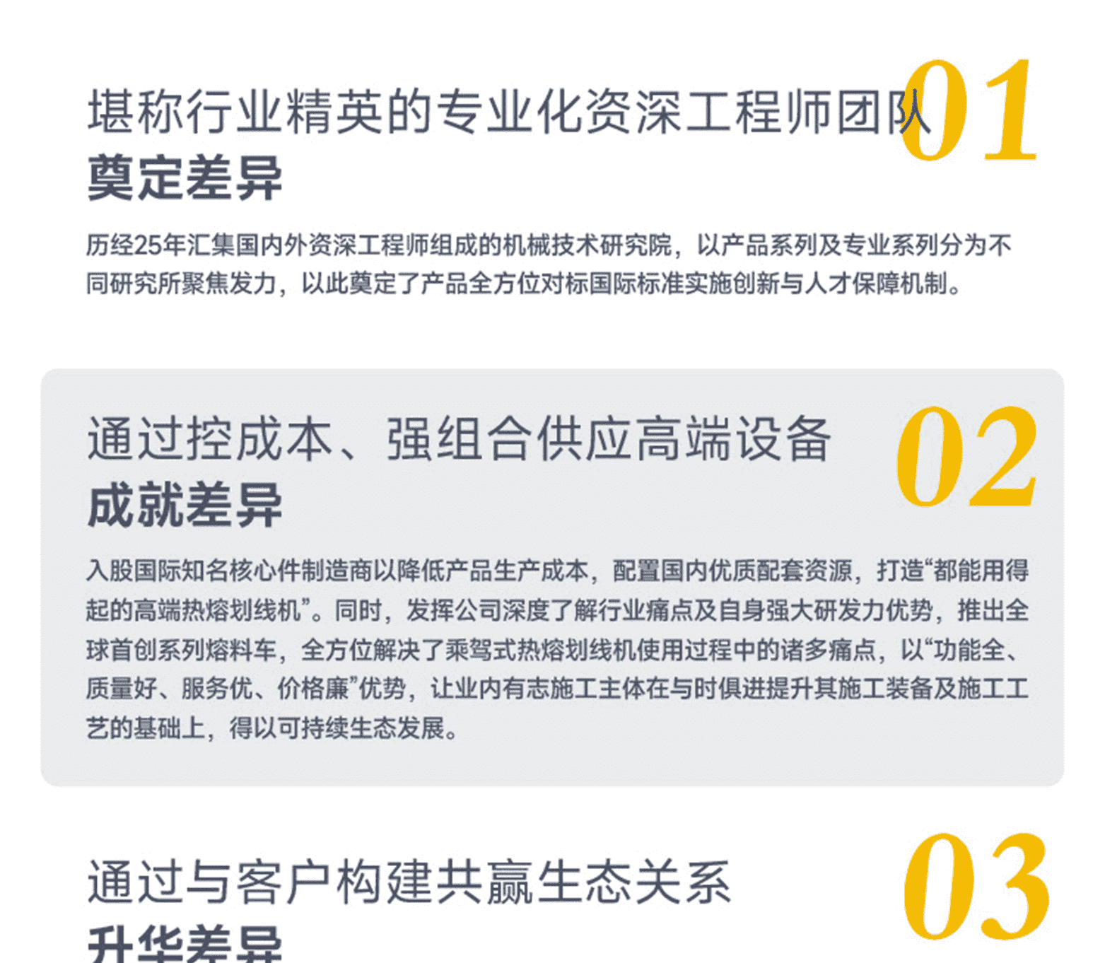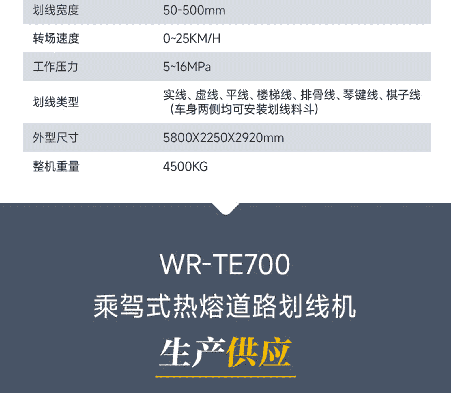 ?專家測評:核心品質: 動力強勁,運行平穩,全液壓驅動,進口液壓件、易調整多功能劃線端、易操作式人機對話、導熱油保溫熱熔釜。主要特點:擠壓施工,線寬可調;多功能料斗可施劃多種線型、易維護、雙側劃線、劃線效率高
