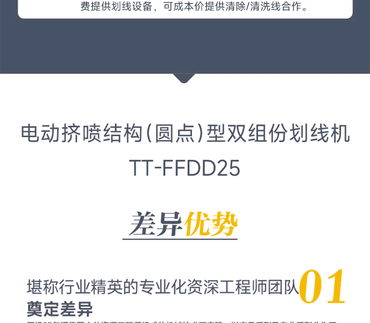 核心品質:電動減速橋、進口隔膜閥、進口流量計、全車電泳涂裝。主要特點:大容量涂料罐、大排量空壓機、操作簡便易、容易清洗、點涂施工效率高